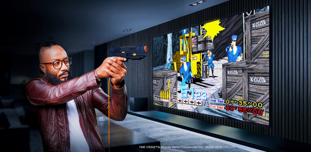 Designed under license and supervision of Bandai Namco Entertainment Inc. and multiple members of the original TIME CRISIS arcade team, the new G‘AIM’E TIME CRISIS Lightgun is released in time to celebrate the momentous 30th Anniversary of TIME CRISIS hitting the arcade, featuring the full arcade ROM for the ultimate in authenticity and realism. All that’s missing is the need to insert coins!