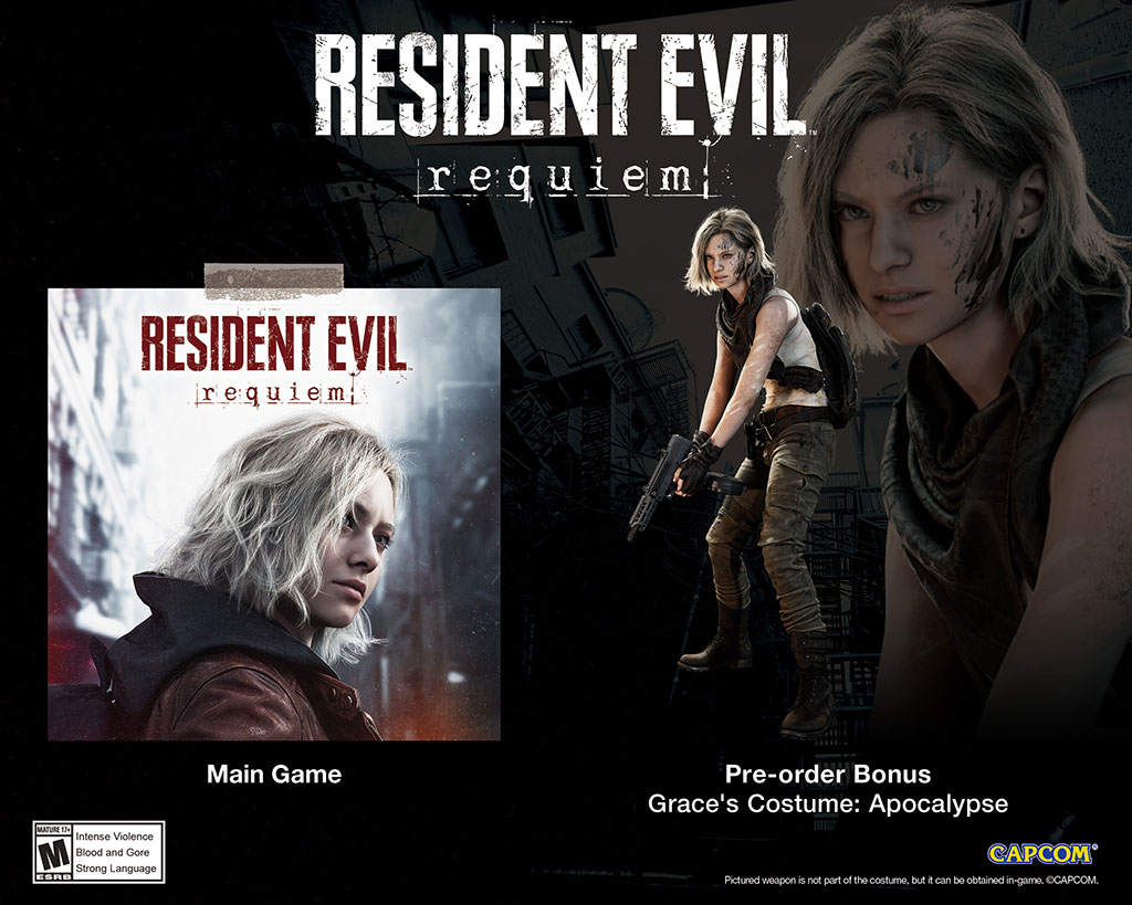 Prepare yourself for the horrors ahead as Resident Evil™ Requiem wraps up spooky season with a bang with pre-orders now available across all platforms, including PlayStation®5, Nintendo Switch™ 2, Xbox Series X|S, PC via Steam, and now for the first time ever on Epic Games Store, with official release taking place on February 27, 2026. All pre-orders will come with Grace’s gritty costume “Apocalypse” as a pre-order bonus. Not only that, “Road to Requiem” showcased a frightful amount of new Resident Evil™ announcements that are sure to make you scream.Hosted by the legendary Maggie Robertson, voice actress of the iconic Lady Dimitrescu in Resident Evil™ Village“Road to Requiem” provided an in-depth look back at the Resident Evil franchise, diving into the unforgettable characters, terrors, and chilling details that have all led up to this latest installment, beginning with the 1998 Raccoon City Incident.
