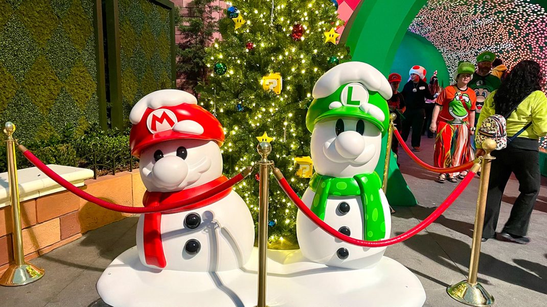 Plus, seeing the Mushroom Kingdom decked out is actually pretty funny. They put these little snowmen near the entrance. One has Mario’s hat and the other has Luigi’s. It is such a small detail, but it works. It feels like a video game level that just got a winter DLC update. I spent way too long taking photos of the tree with the Super Star on top. It is the kind of thing that makes you smile even if you are just there to ride Mario Kart.