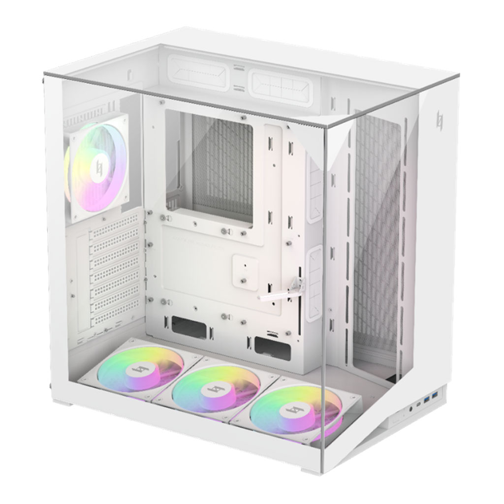 The GAMEMAX NEX C56 VC (Vision Compact) is engineered to deliver maximum visibility with its 270° panoramic, triple-tempered glass design. It is ideal for builders who want an unobstructed view of their system from the front, side, and top. Despite its showcase-focused layout, the NEX C56 VC still offers strong cooling performance, shipping with four pre-installed 120mm ARGB fans right out of the box.