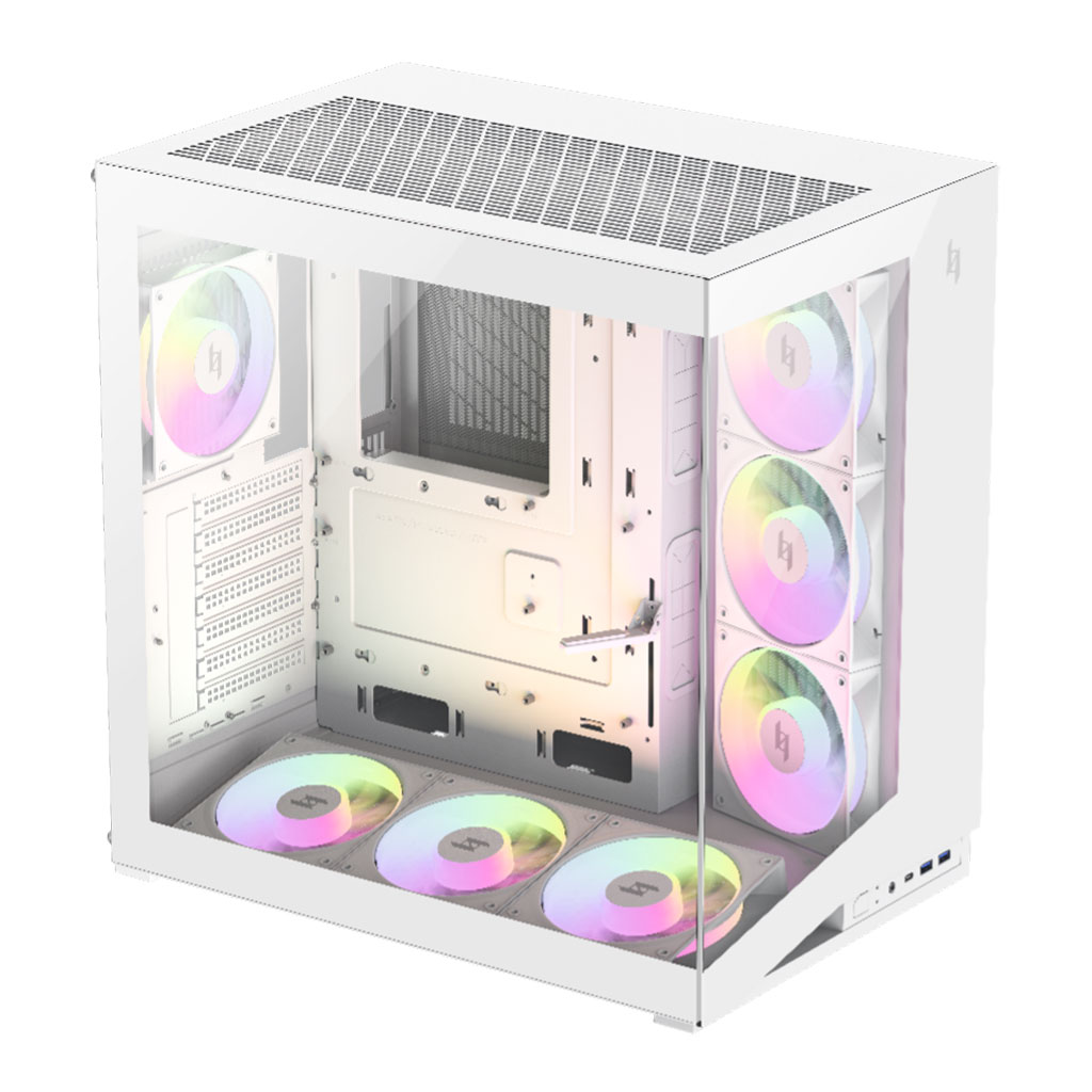 - Extensive Cooling Options: Supports up to 7x 120mm fans or 3 x 120mm+3 x 140mm fans. Pre-installed with 4x 120mm daisy-chained ARGB fans with ring blade design.