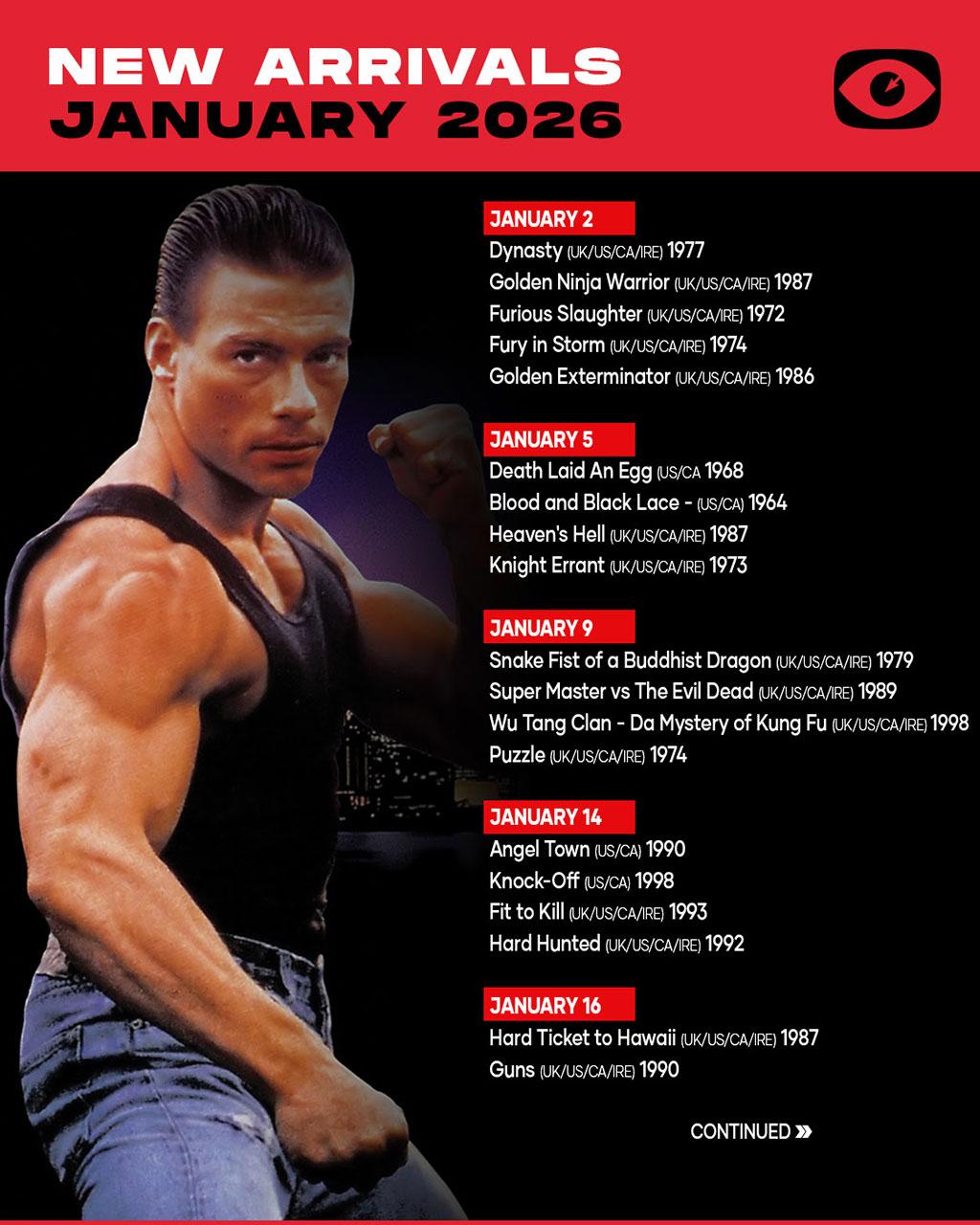 January 14 goes back to the 90s with Van Damme, fists and bullets.