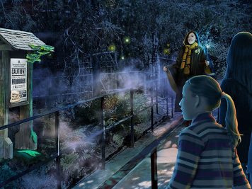 With guidance from a Hogwarts Magical Creatures professor, guests will embark on an exciting walk-through adventure within the Forbidden Forest where they will encounter an array of magical creatures and familiar beasts, from pixies to owls and spiders as well as the infamous Monster Book of Monsters, as they forge ahead on a daring nighttime mission. A series of obstacles will interrupt their journey, challenging them to summon their bravery and spellbinding skills in order to rescue the Hippogriff.