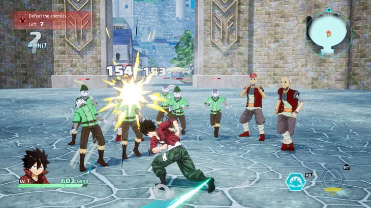 Where Edens Zero excels in over the top anime style, it lacks in creating a successful open world game. Throughout the levels blue boundary walls appear to guide the player on the correct path. These walls appear anytime you are even close to touching them and are distracting, I would have much rather seen more natural boundaries such as rocks and unsurmountable objects used. The second issue is that even though the game is marketed as an open world, the world is extremely empty. There are non player characters in town but they just exist. They have no dialogue options or make any sound (even when appearing to pump their fists and cheer on children dancing). Even the forest outside of the first town is void of any signs of animals or life.