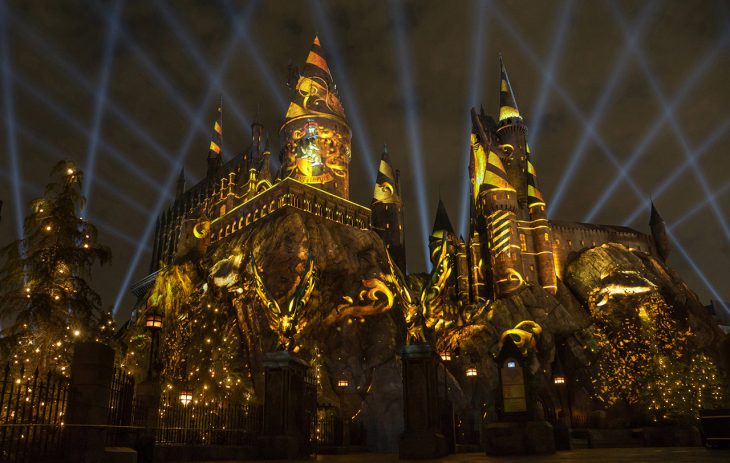 As night falls on Hogsmeade village, “The Nighttime Lights at Hogwarts Castle” will shine brightly with an awe-inspiring spectacle that showcases the four houses of Hogwarts: Gryffindor, Ravenclaw, Hufflepuff and Slytherin that culminates with awesome beams of lights that fan into the night sky.