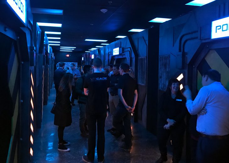 There is a general VR lobby where you can get used to the visuals, shooting, etc until the attendant activates the game. You can turn your head and see the head and gun of your partner, which helps to avoid colliding with them throughout the game. Unfortunately, this is where things get a bit shaky, literally. Unfortunately, the resolution of the VR headset is a bit low and the refresh rate is set to 60 Hz. This causes some slight visual “stuttering” and actually caused me to get a bit off-balance during a couple twists and ducks I had to perform. The nice thing about the VR game is it is truly meant for players to move around the space and duck behind cover when needed. Also adding to the disorientation effect is that the headset’s field of view is somewhat limited in comparison to a Rift or Vive unite. That might be okay if the refresh rate were increased to 90 Hz, but I digress. Adding to this effect was the fact that I LOVED the system’s wireless capabilities. Their VR headset units have NO WIRES connecting you to anything else. You are truly “free to roam about the cabin” as it were, and so I did.