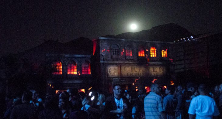 After that, we walked our happy selves over to the trio of haunted houses in the back lot. One of my biggest disappointments of the night came on this walk. I should preface this with the knowledge bomb that The Purge is the only theme for scare zones around the park. Horror Nights Orlando does this one theme for scare zones bit a lot and, especially with The Walking Dead, to great effect. Unfortunately, Horror Nights Hollywood does not pull this off as well – but more on that later. There is a long, concrete transportation tunnel that guests have to walk through to get to the back lot this year. This tunnel is all decked out in what the park considers The Purge theming: Blinking red and blue lights, metal music, and what appear to be stoners (the monsters kind of just ambled about). It is a loud, cacophonous walk that will leave you with a headache and not scared in the least. The area is also a choke point where a nice walkway gets squished into two three foot wide paths demarcated by stanchions with legs that can be easily tripped on – especially when the lights start pulsating. This whole tunnel was simply ill-conceived and should be removed ASAP. Turn the lights up a bit so people are not tripping, widen the paths so people can be more comfortable, and get people to the back lot which is where they wanted to go initially – before the 0.37 Miles walk each way (wear good shoes).