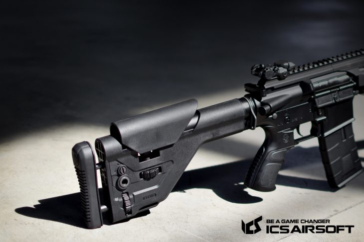 May 26, 2016 – It is exciting to let you know we are ready to release our new “Sniper Stock”, UKSR. When it comes to sniper stock, it should provide the adjustable cheek piece and adjustable length. ICS UKSR offers 12 levels to be adjusted for the snipers. Additionally, UKSR has the large battery space that you can put 11.1V Lipo easily. Especially, you can remove the UKSR butt pad quickly and easily, the important thing for Airsoft players; Only with one coin, you can change the battery without any tool. Moreover, UKSR is compatible with M4 stock tubes from most of the brands in the market. ICS UKSR offers a fine-tuned and customized touch to every Airsoft player.
