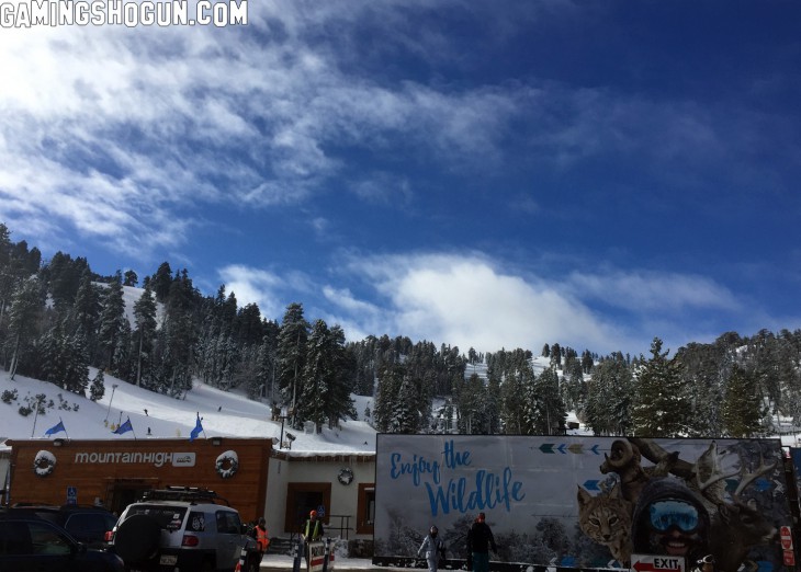 With these 80’s film-inspired ski fantasies living in my brain, I knew that I had a lot to learn about real world skiing. So we packed up the GamingShogun family truckster and headed off for the resort in the early morning hours. That was a good thing too, as it didn’t take long for the entrance road to the Mountain High resort to get backed up with cars trying to get to its three parking lots. The best advice I can give anyone wanting to have fun at Mountain High is to get there as early as humanly possible. This is one popular resort and skiers and snowboarders arrive in droves – the earlier you arrive, the better. You will get a better parking spot as well as place in line for any equipment rentals you need to do. As we waited in line for our equipment rentals, the nerves started in as this was actually going to happen. We were going to be sliding across a field of snow on a couple of “flimsy” sticks!