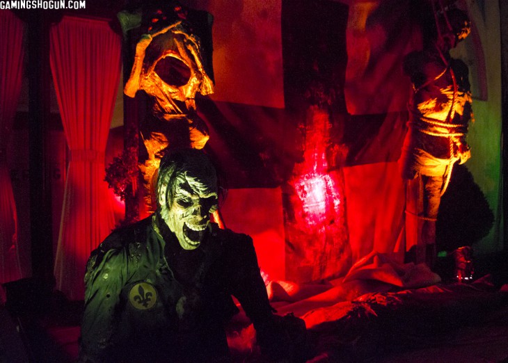 While Crimson Peak: Maze of Madness is one of the most beautifully-designed haunted houses I have ever seen, with set pieces that seem straight from the trailer for Guillermo Del Toro’s upcoming Crimson Peak film, I was simply lost throughout this experience. I, like most people, have yet to see the movie, which comes out on October 16, 2015. Unfortunately, it also gave me an idea about the movie which might not be correct and could color my view on seeing it at all. Kudos to the set designers and builders on this one though – it really looks amazing.