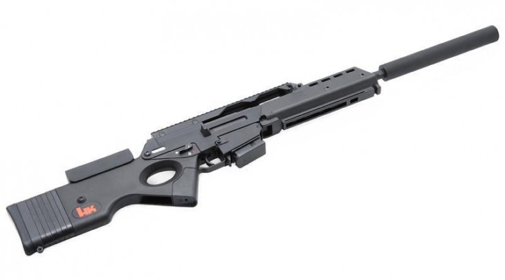 The Umarex / Elite Force H&K SL9 airsoft sniper rifle is certainly one of the most striking airsoft guns you will ever see on the field. Its black, futuristic design looks like something you would see in Appleseed or any other sci-fi action film you can envision. In reality, this airsoft gun’s bite is just as striking as its bark, with a rated 440 FPS velocity and 650mm inner barrel! The H&K SL9 features both semi-automatic as well as fully automatic fire modes, so you can use this rifle in more than just a sniper role.