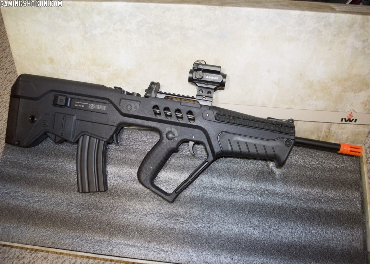 Recently, I got the chance to evaluate an airsoft rifle that I had been interested in for a long time: the Elite Force IWI Tavor 21 Elite AEG. My interest came primarily from wanting to field a Bullpup style airsoft rifle and the advantages therein. Advantages such as having a longer inner barrel in a smaller overall package and using an airsoft rifle where the weight was put closer to the players’s body. In the world of airsoft Bullpup rifles, there are really only three viable styles: The IWI Tavor 21, FN2000, and Steyr AUG. Being that it is produced by Umarex/Elite Force, I chose the IWI licensed Tavor 21 for its one year factory warranty and overall reputation.