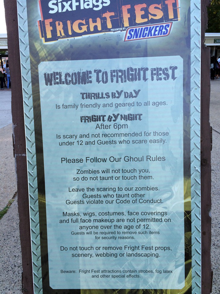 Your mileage may vary – that is the axiom that sums up our experience at Six Flags Great Adventure’s Fright Fest. There are some that would find this kind of entertainment silly; that would mock the employees trying their hardest to scare them or laugh off the mazes, dismissing them as predictable or worse. But I, and the group I was with, was all about it, happy to let the Halloween festival atmosphere wash over us and willing to let ourselves be scared by things that go bump in the night. I respect the lengths that Six Flags goes to in order to transform its theme park while also, well, being a theme park. If you’re willing to immerse yourself in it, suspend belief, and can appreciate what the company and its hardworking costumed staff are trying to do, I think you’ll agree that Fright Fest is a real Halloween treat. I’m very glad I could have fun now, considering how much I loved our trips to the park when I was younger. Highly recommended!