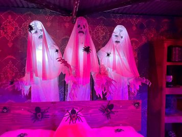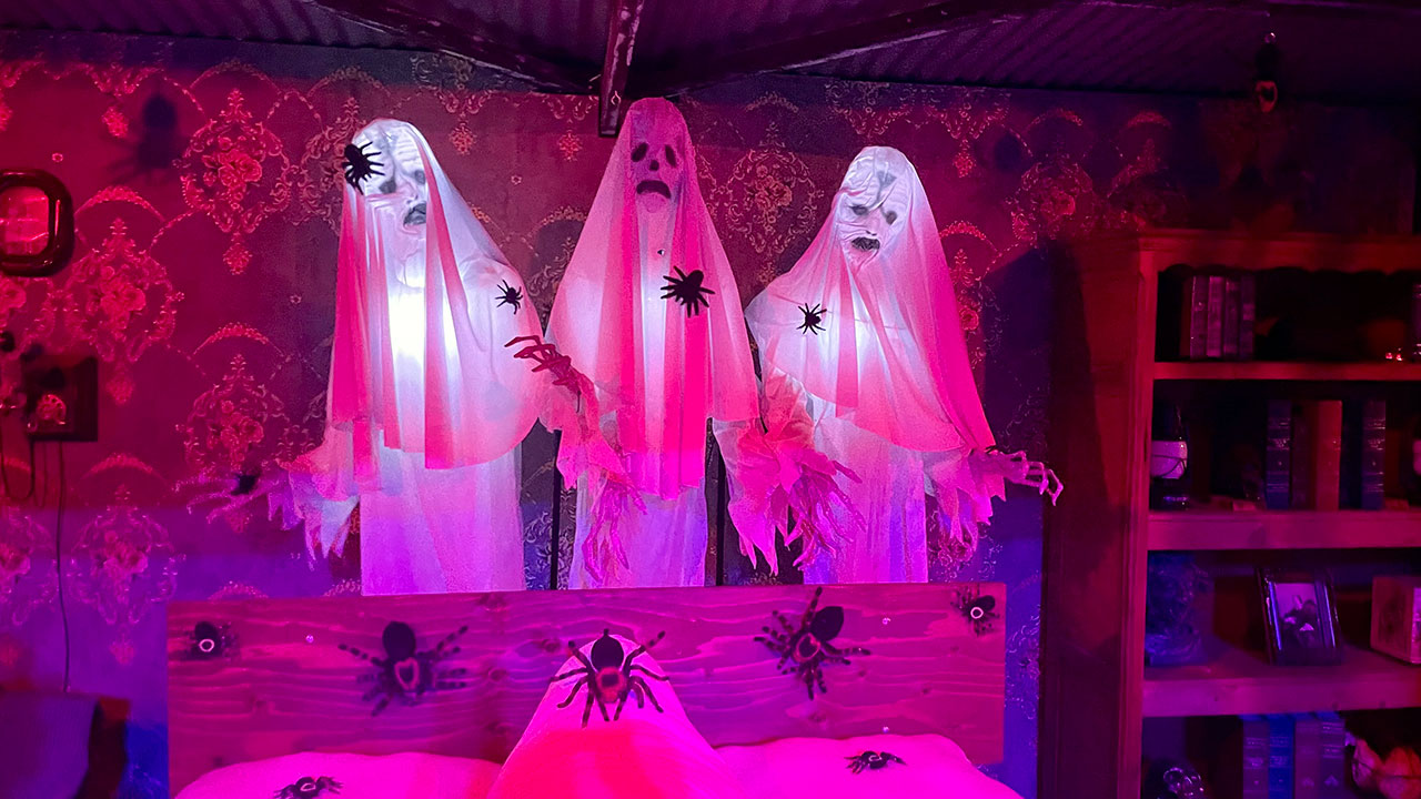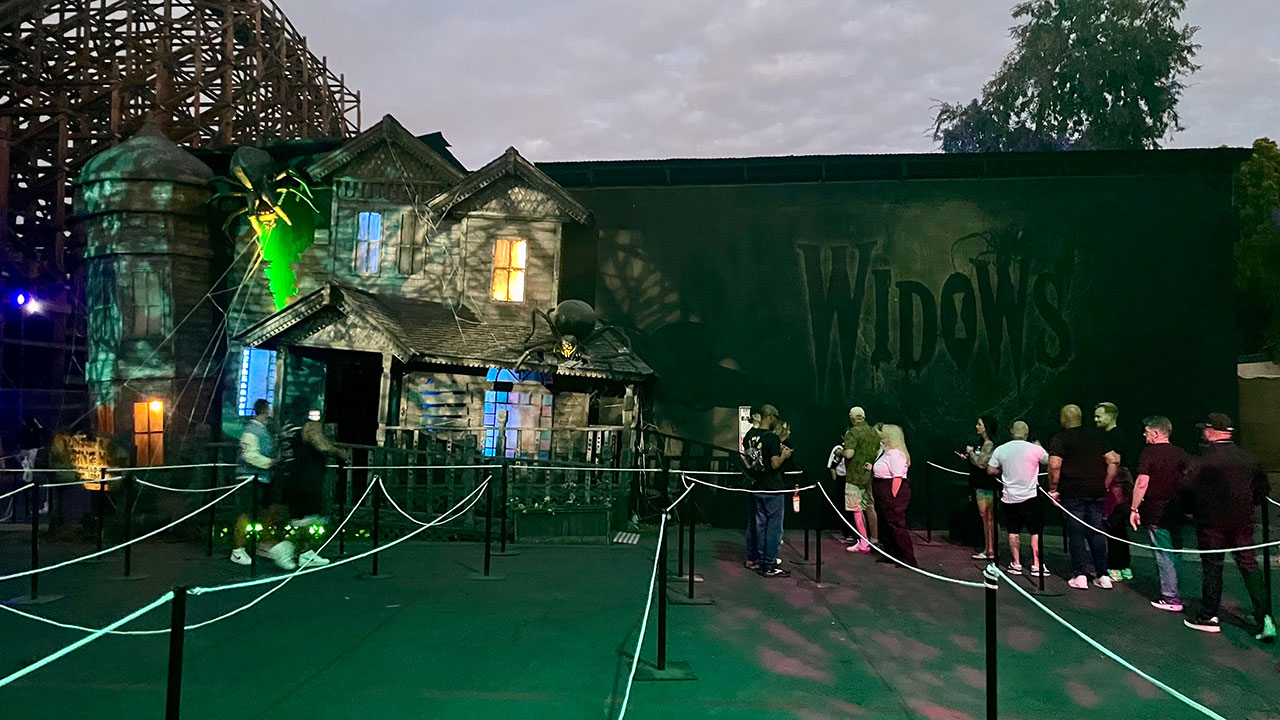 While the new additions are the main draw, the strength of the returning lineup cannot be overstated. The sophomore mazes from 2024, Widows and Eight Fingers Nine: The Boogeyman, have settled in beautifully. Widows, with its skin-crawling concept of a spider-infested convalescent home, remains a standout for its sheer originality and creepy execution. Eight Fingers Nine is even better, a living Grimm’s fairytale that feels poetic and nightmarish in equal measure, stalking you with a monster born from folklore. It’s this kind of high-concept, original storytelling that sets Knott’s apart. Fan-favorite Cinema Slasher is back, a loving and bloody tribute to 80s slasher films that is pure, unadulterated fun. It’s also the final year for The Grimoire and Mesmer: Sideshow of the Mind, and it’s a particular shame to see Mesmer go. Its journey into psychological horror and a sinister carnival sideshow has always been a highlight, a perfect fit for the Boardwalk area it inhabits.