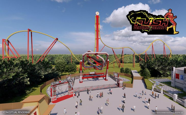 · THE FLASH™: Vertical Velocity –Presented in partnership with Warner Bros. Discovery Global Themed Entertainment and DC, the first super boomerang coaster to open in North America rushes forward and backward at nearly 60 miles per hour through a 180-degree twisted drop and zero-G roll. In a flash, it changes direction and speeds off again, backward;