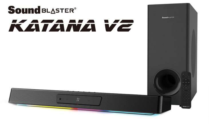 The Sound BlasterX Katana soundbar was one nice piece of kit for several years, bringing good quality, loud sound to dorm rooms, home offices, and game rooms the world over. Recently, Creative Labs released the next iteration of this low-cost, high-power soundbar, the Sound Blaster Katana V2. Notice they have dropped the gamer-focused “Sound BlasterX” moniker from its name, signaling that the Katana V2 isn’t just for gaming – its potential as a home theater soundbar as well as soundbar to play music from your computer or smartphone now fully-realized. At $329.99, a higher price point than its predecessor, will the Sound Blaster Katana V2 live up to its creator’s intentions as a multi-use soundbar? Read on to find out!