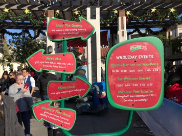 Universal Studios has brought both Grinchmas and Christmas in the Wizarding World of Harry Potter to the fore for this holiday season, both with unique offerings sure to please young and old alike. We started our long day at the park in the morning, with a stop at the Will Call desk to pick up our media tickets. Immediately while approaching the main gate, it was clear that Universal Studios has brought their full decorating and design prowess to bear. Christmas lights, trees, and more adorn every nook and cranny of the park.