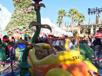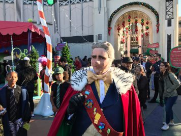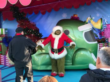 Grinchmas itself takes place in the Universal Plaza. There, you’ll find various food vendors, activities, and photo opportunities all arcing around the Grinchmas tree. This tree is enormous and never ceases to amaze – even in daylight. Once night falls, however, you’ll see it burst into a whole new life with amazing lighting effects. Also to be enjoyed throughout the day, there are multiple shows that take place at the base of the Grinchmas tree. For the little ones, be sure to get your photo taken with the Grinch himself! In the evening, you can enjoy the Grinchmas tree lighting ceremony, which is a brief retelling of the Dr. Seuss tale (as portrayed in the Universal Pictures’ film). You can even send a postcard to the Grinch, telling him you’ll do three good deads – whch is great for the kiddies. The Whoville citizens are all in movie quality makeup prosthetics and the makeup artists behind these applications should be very pleased with their edge-blending work.