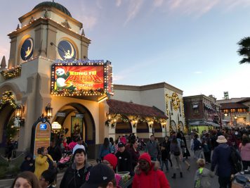 One of the areas of the park I always enjoy is the New York area next to the new Kung Fu Panda Adventure attraction. This time of year, the New York area is covered in snow and beautiful lighting which is truly a sight to behold in the evening. The Kung Fu Panda Adventure attraction is also a lot of fun and not to be missed, but I wanted to focus more on the holiday portions of the event for this article. Going to the lower lot, the Jurassic Park ride is still being transformed into the Jurassic World attraction, but you can still enjoy the holiday lighting in that portion of the park as well. The fabled Universal Studios Tour is, as always, outstanding and it’s a pleasure to see the backlot in action – especially if you attend on a weekday. One never knows what movie or celebrity might be filming on the lot at any given time.
