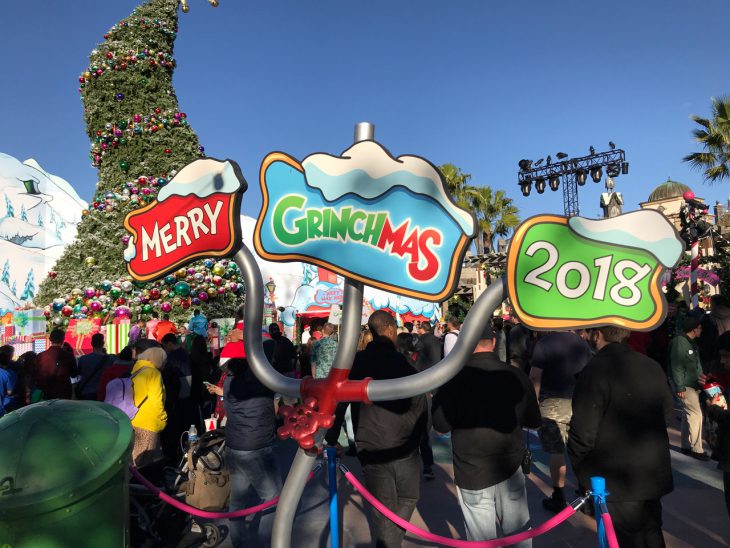 Universal Studios has brought both Grinchmas and Christmas in the Wizarding World of Harry Potter to the fore for this holiday season, both with unique offerings sure to please young and old alike. We started our long day at the park in the morning, with a stop at the Will Call desk to pick up our media tickets. Immediately while approaching the main gate, it was clear that Universal Studios has brought their full decorating and design prowess to bear. Christmas lights, trees, and more adorn every nook and cranny of the park.