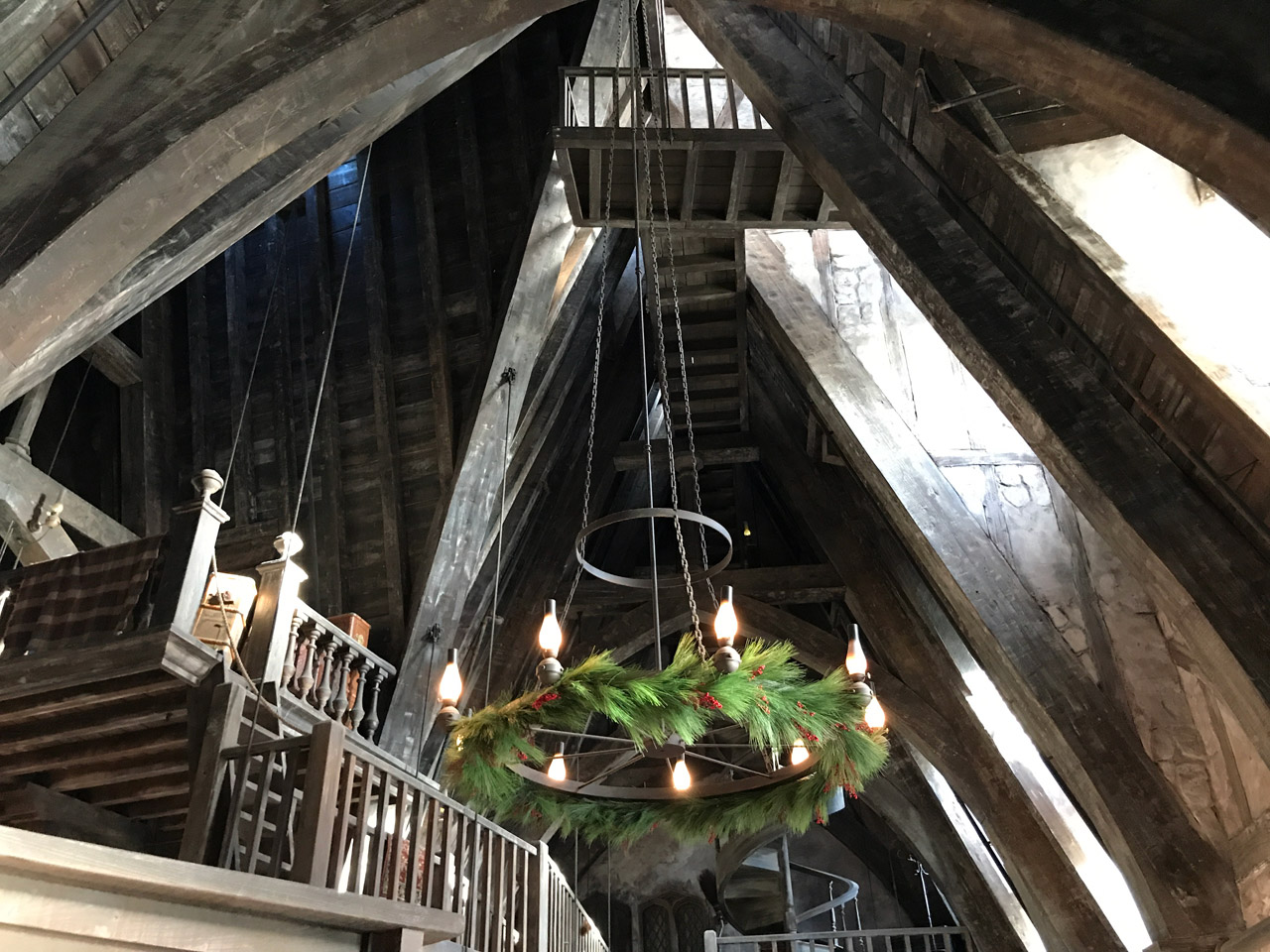 Traveling farther into the park, we entered the Christmas in the Wizarding World of Harry Potter makeover of Hogsmeade. Again, Universal Studios park designers and decorators went above and beyond, managing to perfectly balance beautiful, seasonal decor with something that seems very in-character with the fictional village. At night, you and your group can experience faux snowfall! The Three Broomsticks restaurant has a holiday plate and you can now enjoy a hot version of the popular Butterbeer beverage. The holiday frog choir also has various shows throughout the day where they sing holiday tunes sure to please. The Magic of Christmas at Hogwarts Castle is a beautiful nighttime show where precision projector work and practical effects all come together into one eye popping spectacular. Overall, The Christmas in the Wizarding World makeover is outstanding – both in design and fun factor!
