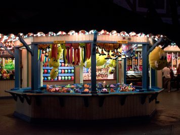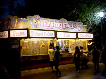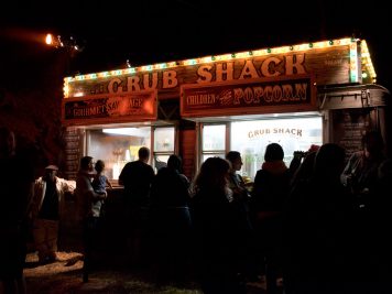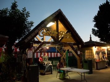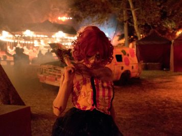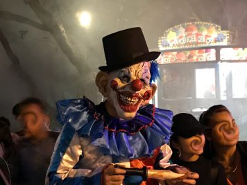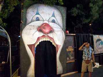 Walking up to the impressive pumpkin pyramid, we watched the “rope drop” ceremony in which a cavalcade of evil clowns worked the crowd before letting guests into the event. After rope drop, we walked into the Purgatory area of the LA Haunted Hayride to checkout the available attractions, but were surprised by what was absent this year. The Purgatory area is somewhat smaller this year, which does makes it easier to navigate. Unfortunately this decrease in area comes at the loss of a couple really cool things. Absent from Purgatory this year is Jack’s Carving Shack, where guests could pay an additional fee to carve their own pumpkins and get tips from a pro-carver. However, a much bigger absence felt at this year’s LA Haunted Hayride is the Death Row photo op tent, where guests could take their pictures in a variety of sets – from bloody bathtubs to coffins. It was a really cool way for people to make memories of their trip out to the hayride. The snack shack is back, serving the same gluten-free treats as before, and most of the fare we ate hit the spot. The pumpkin beignets are especially good so I highly recommend them.
