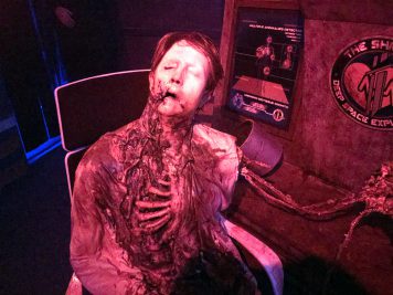 The Exorcist: Forbidden Screening was an unexpected surprise. Guests are taken into the church in large groups and greeted by nuns and priests standing on the sides of the pews. Crosses are hanging everywhere. After a lecture about how blasphemous we all were, they played movie clips from The Exorcist. While this is happening, objects in the room start moving around, matching what’s happening on the screen. Then other stuff happens – scary stuff. Also, enjoy a bowl of pea soup from the food cart outside!